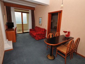Двухместный двухкомнатный номер категории Senior Suite – это комфортабельный номер с большой площадью и просторной террасой с летней мебелью, всего 1 номер данной категории. Из номера открывается вид на море и парковую территорию санатория. Номер состоит из гостиной, спальни и двух современных санузлов.