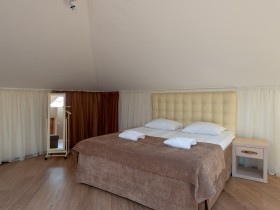 Однокомнатный номер с большой двуспальной кроватью / возможно с 2-мя раздельными - по запросу, с зоной отдыха и балконом-террасой. Покрытие пола - ламинат. Общая площадь номера составляет 34 м2. Вид – на море. Оснащение номера телевизор кондиционер сейф Оснащение ванной душ встроенный халаты тапочки мини-парфюмерия