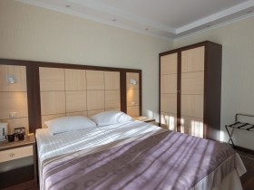 Комфортный трехкомнатный номер - 2 отдельные спальни с собственными ванными комнатами, гостиная - с зоной отдыха и мини-кухней. Мини-кухня: назначение - разогрев и приготовление простых блюд детского и диетического питания; оборудование - микроволновая печь, холодильник, электрочайник, индукционная мини-поверхность. * Мини-кухня не предназначена для полного домашнего использования. Покрытие пола - ламинат. Выход на балкон - из каждой комнаты. Общая площадь номера составляет 61 м2. Вид - внутренний двор и территория отеля. Оснащение номера телевизор кондиционер сейф Оснащение ванной ванная халаты тапочки мини-парфюмерия