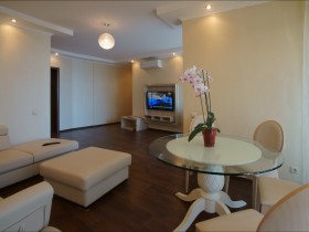 4-местный 3-комнатные апартаменты Номер с удобствами (санузел,душ,мини-парфюмерия) Номер состоит из трех жилых комнат: две спальни "под ключ" в виде отдельных номеров; общая гостиная с зоной для отдыха, полностью оборудованная кухня с обеденной зоной; имеется также гостевой санузел, общая гардеробная комната,ТВ,кондиционер Покрытие пола - ламинат, декоративная плитка (гостиная). Вид - двор с открытым бассейном, солнечная сторона. Балкон - терраса с дополнительным отдельным выходом во двор отеля. Площадь: 174 м2.