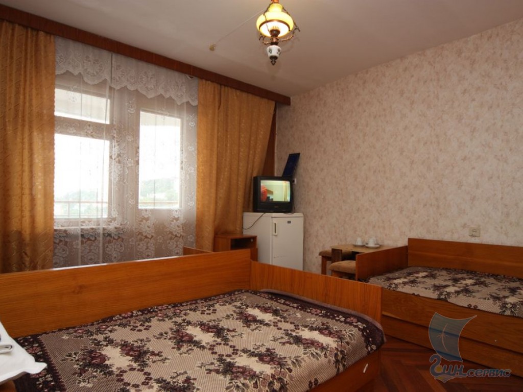 2-х местный номер «Стандарт Плюс» - это комфортабельный увеличенный стандартный номер со всеми необходимыми удобствами, площадь номера 19 кв.м.. Номер укомплектован всей необходимой мебелью, одна двуспальная кровать и двухъярусная кровать, прикроватные тумбочки, шкаф, телевидение со спутниковыми каналами, стол со стулом, набор посуды, набор полотенец, балкон. Санузел объединен с душем.