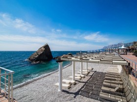 Находясь вблизи от самой южной точки Крыма, отель полностью закрыт природным рельефом от сильных ветров с Запада и Востока, а с Севера защищен грядой вековых скал, которые обеспечивают максимальное количество солнечных дней, зачастую не пропуская дождевые тучи даже в самые пасмурные дни. Максимальные температуры здесь не столь высоки благодаря смягчающему действию водного резервуара. Благодаря этим природным характеристикам набережная протяженностью около 500 метров и четыре карты пляжа позволят гостям в полной мере насладиться и целебными свойствами Черного моря и теплыми лучами ласкового Крымского солнца.