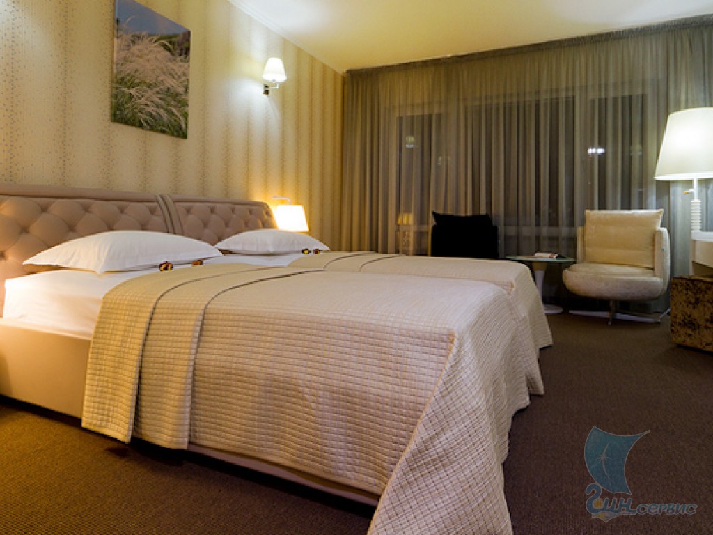 2-местный стандарт 2-х местный комфортный однокомнатный номер с видом на море. В номере расположены удобные кровати с ортопедическим матрацем, вместительный шкаф-купе, элегантный туалетный столик с зеркалом, тумба под телевизор со встроенными полочками, пуф, 2 кресла и журнальный столик. Номер оснащен современной системой климат-контроля, LED телевизором, телефоном, Wi-Fi. Насладиться окружающим пейзажем вы можете на балконе (общая площадь - 14 м2), где можно отдохнуть в ротанговых креслах. Ванная комната (общая площадь - 3,5 м2) оснащена душевой кабиной, феном для волос, косметикой, халатами, мягкими полотенцами, тапочками.